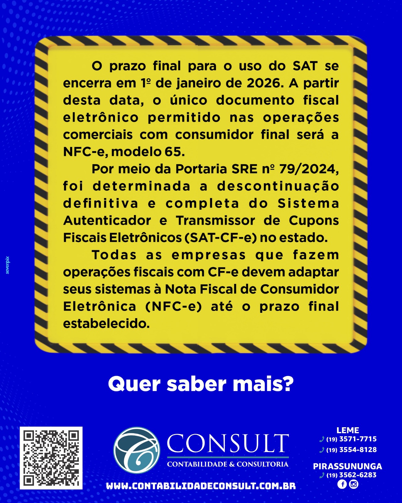 A partir de 1º de janeiro de 2026, estará vedada definitivamente a emissão do CF-e-SAT, tornando a NFC-e (modelo 65) o único documento fiscal eletrônico autorizado para o varejo em São Paulo.